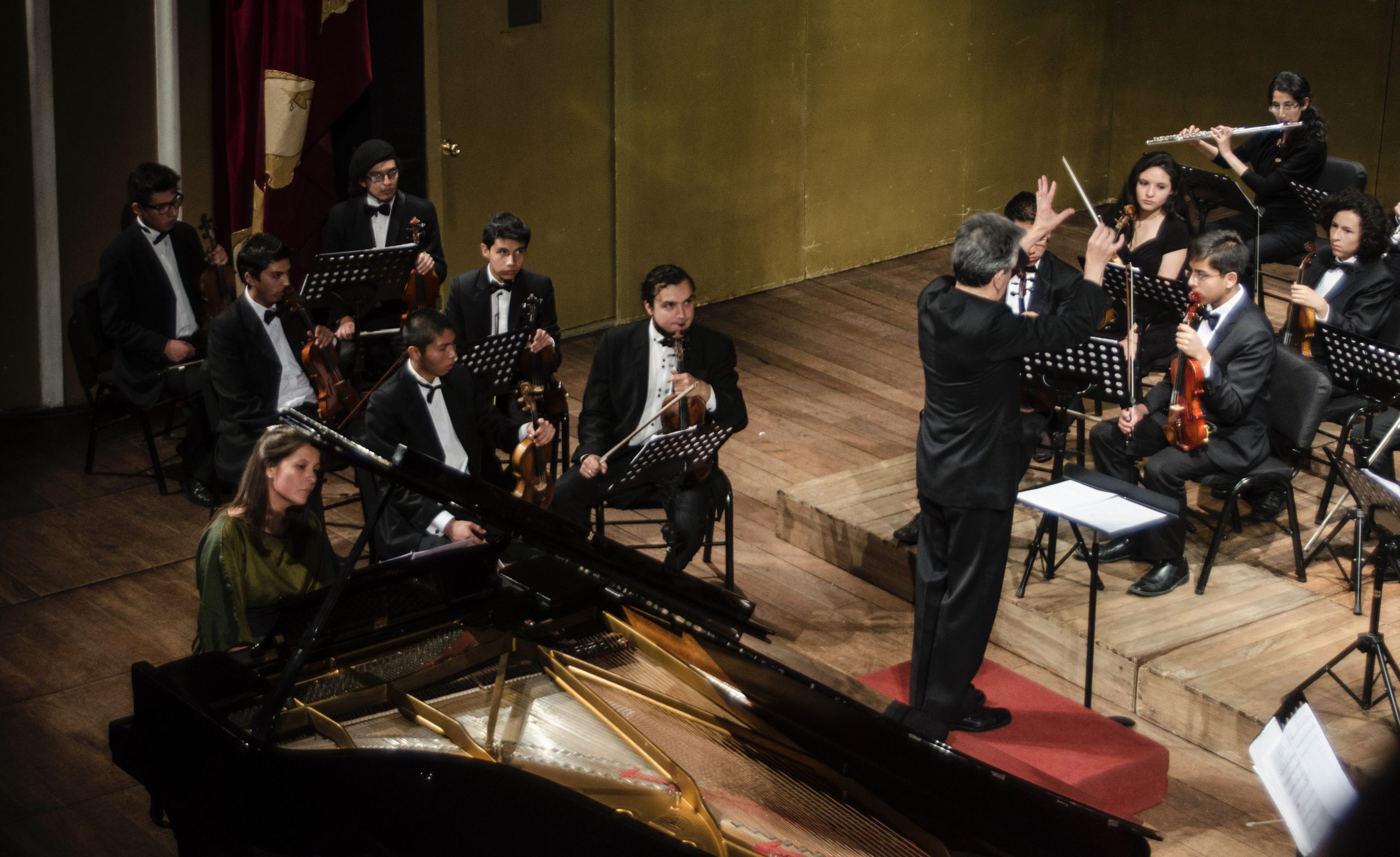 Ana María Vera estrena un concierto para piano del compositor Alberto Villalpando, con el director Cergio Prudencio y la Orquesta de Cámara Juvenil Bolivia Clásica.