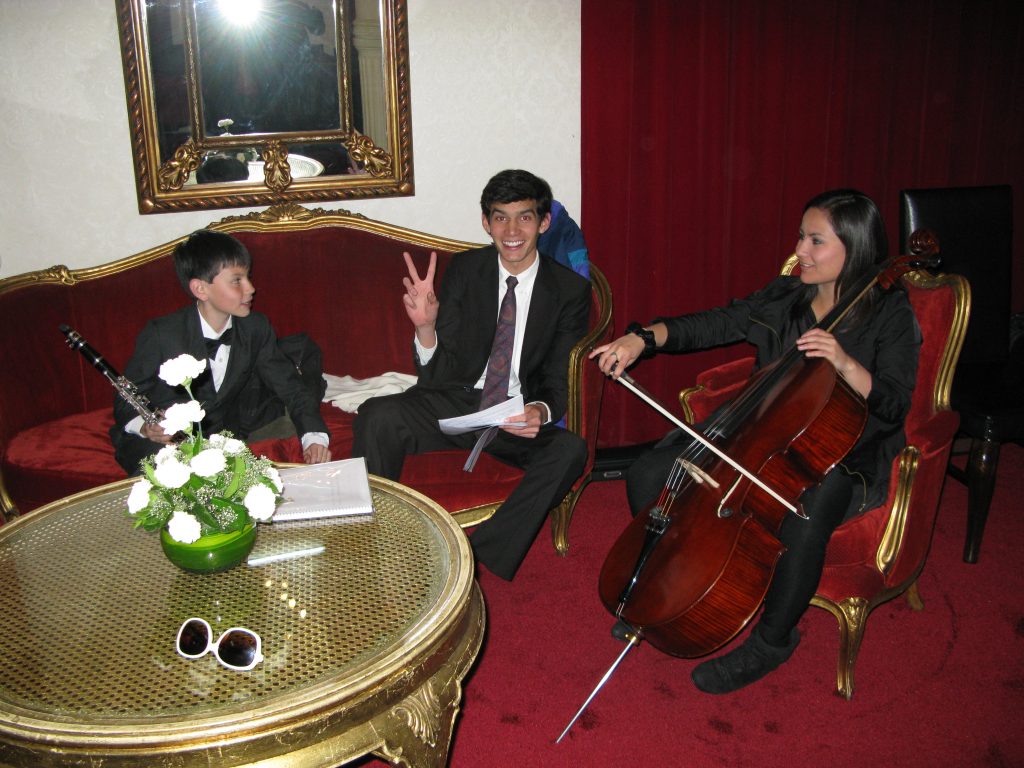 Con el violinista Jaime Laredo y chelista Sharon Robinson (izquierda) durante el Festival Bolivia Clasica 2014. Este festival marcó un legendario retorno retorno de Jaime Laredo, un violinista de renombre internacional de ascendencia boliviana.