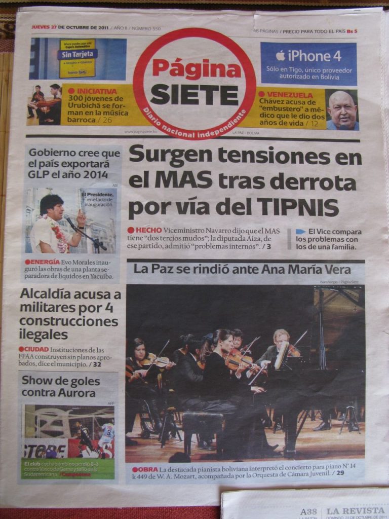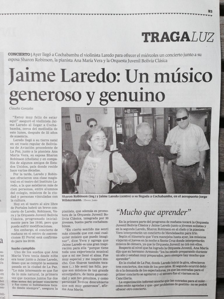 Our collaboration with the Sociedad Boliviana de Música de Cámara led to memorable performances of Shostakovich’s Concerto for Trumpet, Piano, and String Orchestra, with Bruno Lourensetto (trumpet), Sergio Escalera (piano) and Willem Stam conducting the Bolivia Clásica Chamber Orchestra.